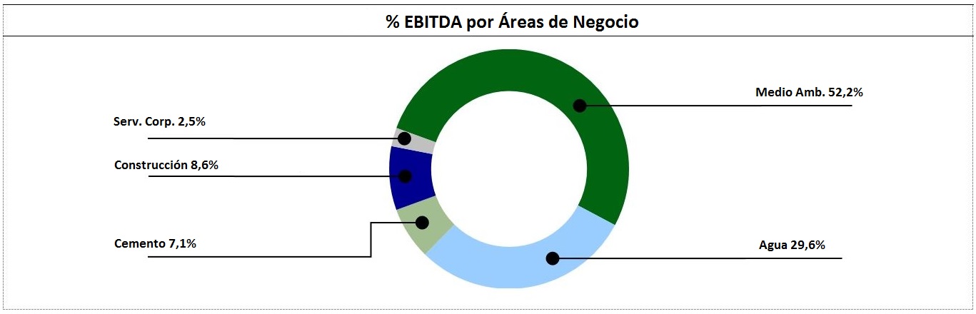 The Environmental Services and End-to-End Water Management areas represented 81.8% of Group EBITDA in 2017, while infrastructure construction, building and other lesser activities accounted for the other 18.2%.