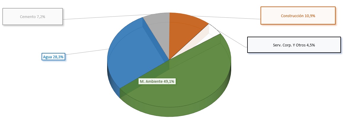 With regard to Ebitda progress by business area, the activities related to utilities, environment (49.1%) and water (28.3%) in total generated 77.4% of consolidated Ebitda in the first quarter of 2019; Construction with Ebitda of 10.9% and Cement of 7.2% are noteworthy for their greater contribution to the Group.