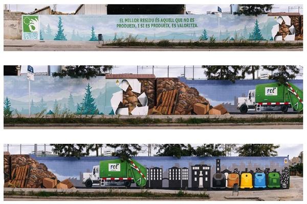 Dentro de los actos programados para esta Semana en Cataluña, y aprovechando la renovación de la planta de valorización de residuos no peligrosos de Sant Feliu de Llobregat, FCC Ámbito ha encargado a una empresa local especializada en grafitis y arte urbano la realización de un mural en la fachada exterior de esta instalación, contando para ello con la colaboración del Ayuntamiento. Con esta acción, FCC Ámbito ha querido visibilizar la jerarquía de la gestión de residuos, la cual prioriza la prevención, tal y como se recoge en el eslogan incluido en el mural: “El mejor residuo es aquel que no se produce, y si se produce, se valoriza”.