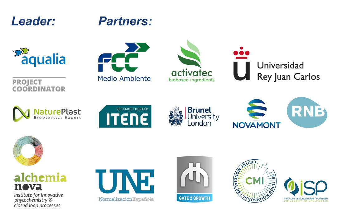 A project financed by the Public-Private Association Bio-Based Industries (BBI JV), led by AQUALIA and in which FCC Medio Ambiente also participates together with: Activatec, RNB, Natureplast, Instituto Tecnológico del Embalaje, Transporte y Logística (ITENE), Brunel University London, Novamont, Universidad Rey Juan Carlos, Alchemia-Nova, Asociación Española de Normalización (UNE), Gate2Growth, Universidad de Valladolid (UVA) and Centre Mondial de l’Innovation – Roullier.