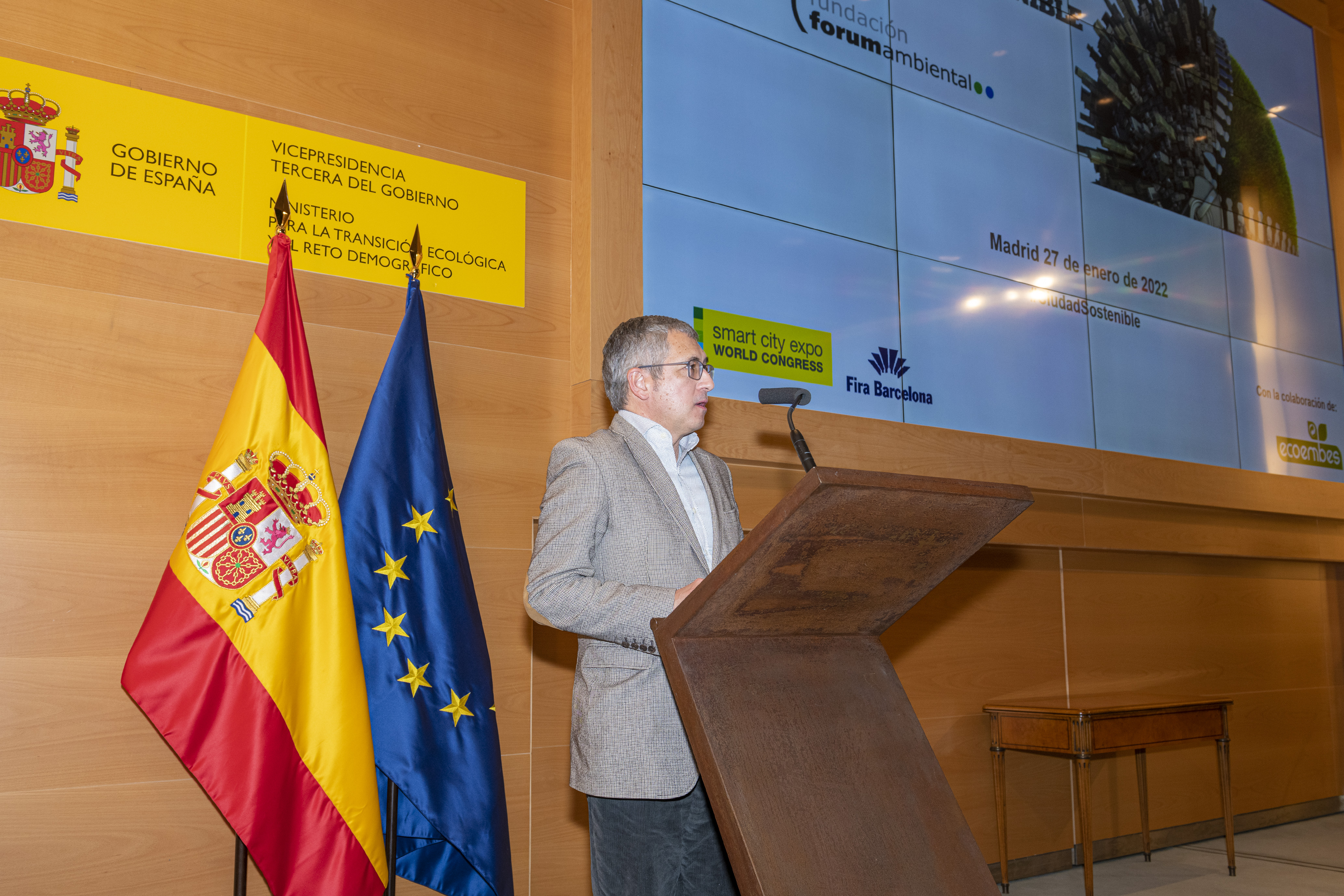 FCC Medio Ambiente has been honoured in the 17th edition of the Sustainable City Awards, which the Forum Ambiental Foundation has been holding for the past 18 years with the support of the Ministry for Ecological Transition and the Demographic Challenge and of Ecoembes. The award ceremony took place yesterday afternoon, 27th January, in the auditorium of the ministry. Jordi Payet, CEO of FCC Medio Ambiente, received the accolade on behalf of the company from Hugo Morán, Secretary of State for Environment. These awards seek to recognise the municipalities and supra-municipal local authorities that have made a commitment to projects and actions aimed at promoting sustainability.