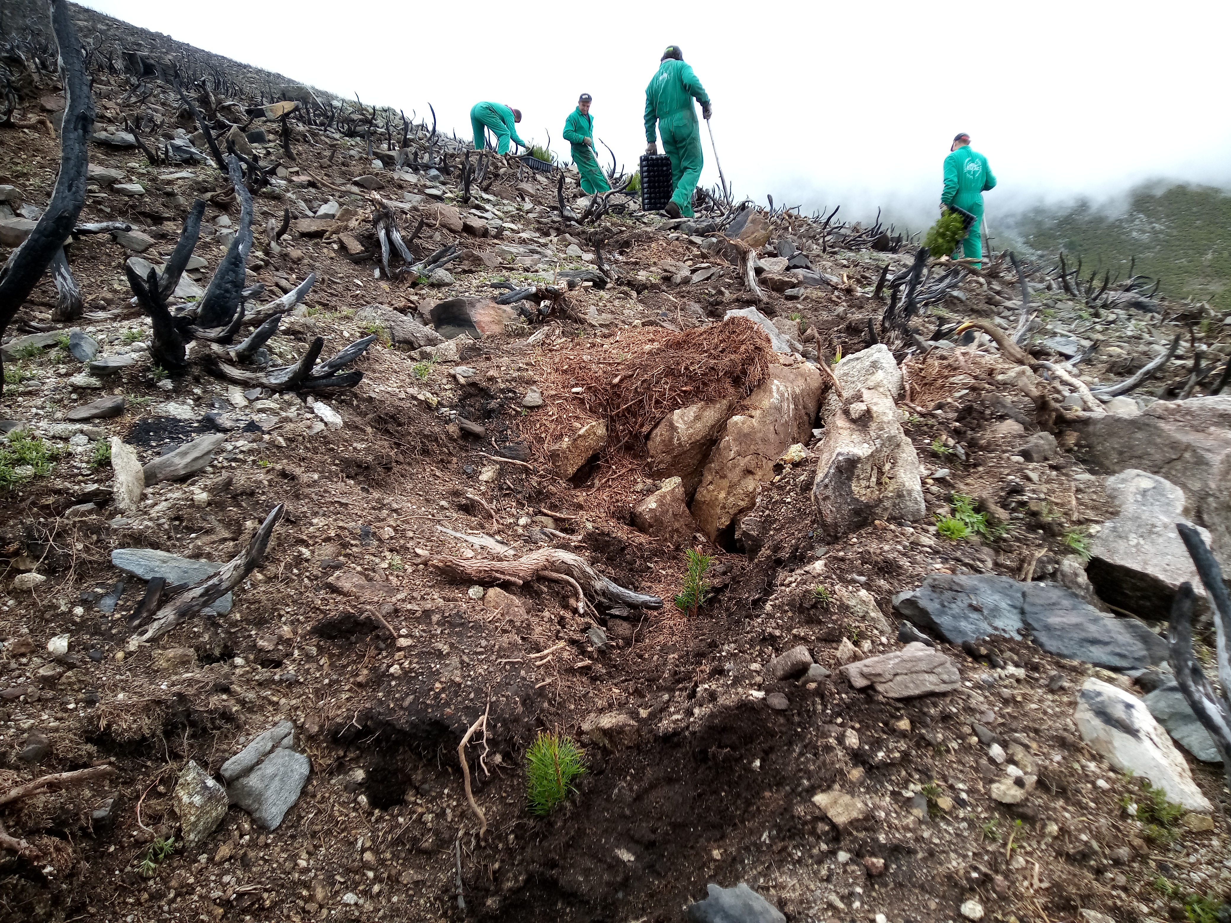 In order to offset its carbon footprint, FCC Medio Ambiente collaborates with the company Bosques Sostenibles on a certified reforestation project over the next 40 years of an area of 40 hectares located in the Monte de Utilidad Pública nº 60 “Valle de Iruelas”, which belongs to the Mancomunidad Asocio de Ávila and is included in the Natural Reserve of the same name. This area, which is home to one of the most important colonies of black vultures in Europe, was burnt down in 2019 and urgently needed to be restored in order to halt erosion and re-establish the regulation of the hydrological cycle. The chosen area allows for the replanting of up to 80,000 trees, including Scots pine and birch trees.