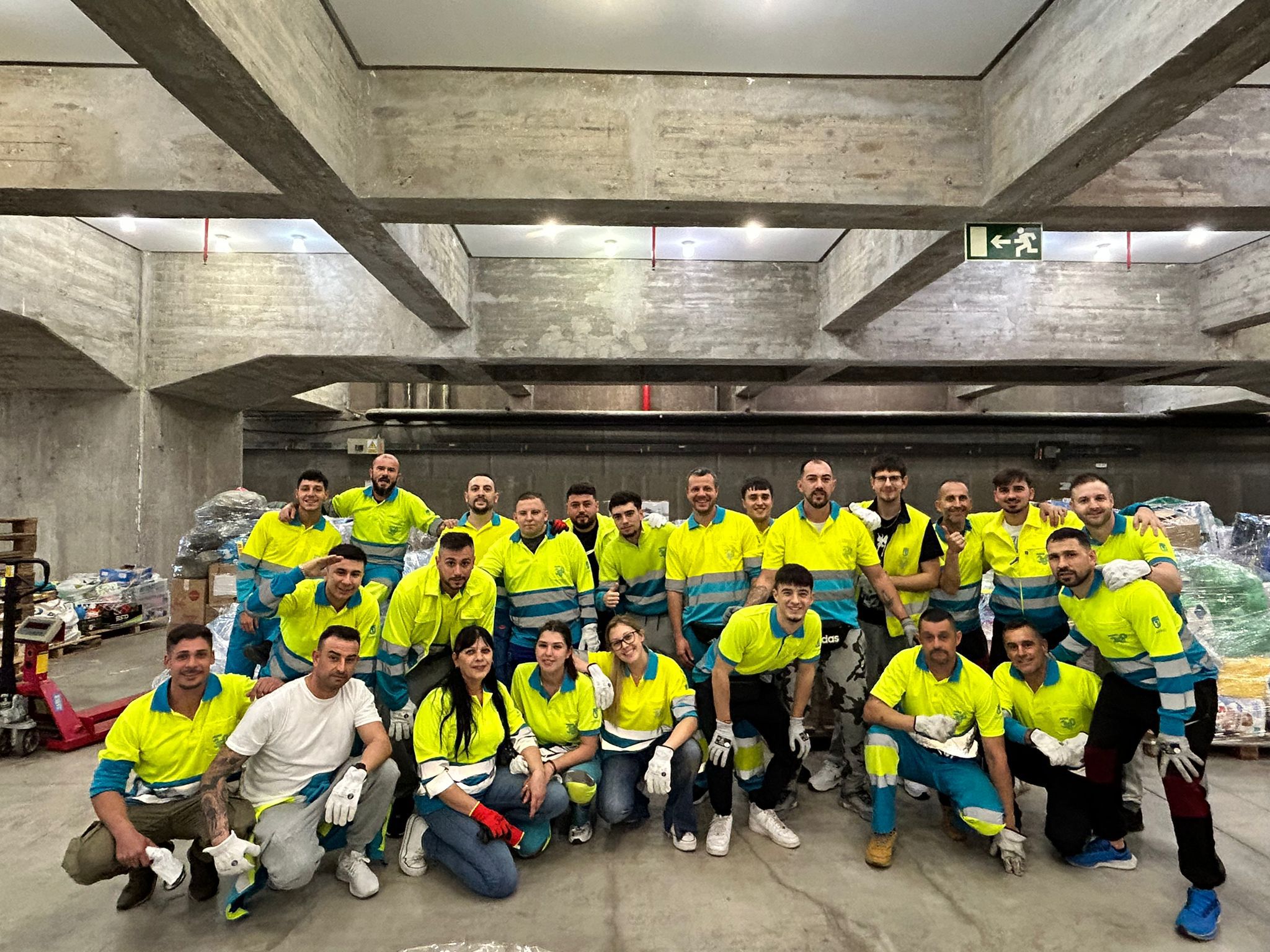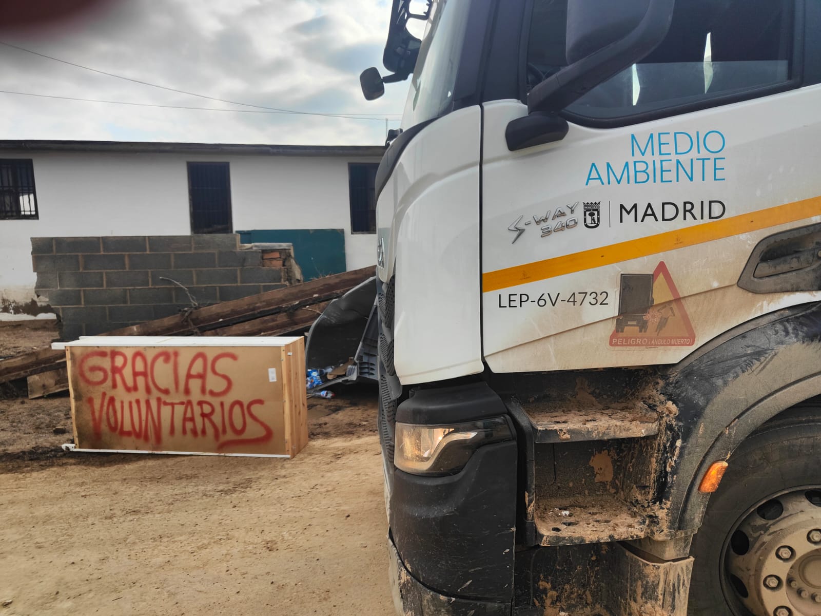 FCC Medio Ambiente's Madrid branch also sent a lorry to the area with 29 m3 of basic necessities and tools consisting of 20,500 gloves, 1,000 protective suits, 48,500 masks, 400 pairs of boots, 300 protective goggles, 600 litres of hydroalcoholic gel, as well as shovels, brushes, picks, scrapers and rubbish bags. This material was collected thanks to donations from the Madrid and Castilla y León-Extremadura branches of the company, the Madrid City Council and Geresco S.L. and Lodiser Global S.L.