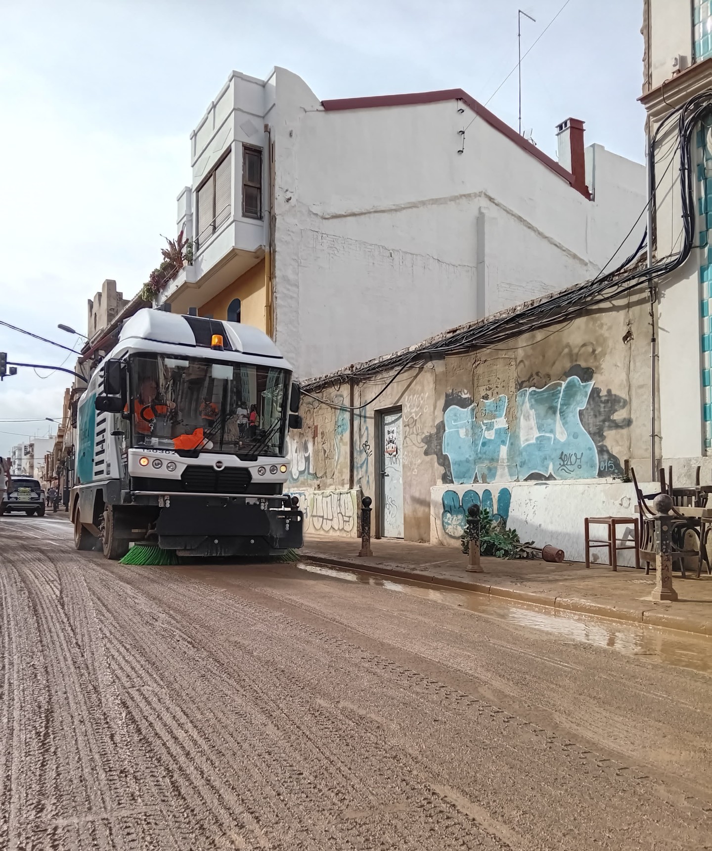 Since the day after the DANA meteorological phenomenon that had a devastating effect on many municipalities in the Valencian Community, FCC Medio Ambiente, in coordination with the local city councils where it works, has been providing equipment to collaborate in the works being carried out to help the affected citizens return to normality as soon as possible.